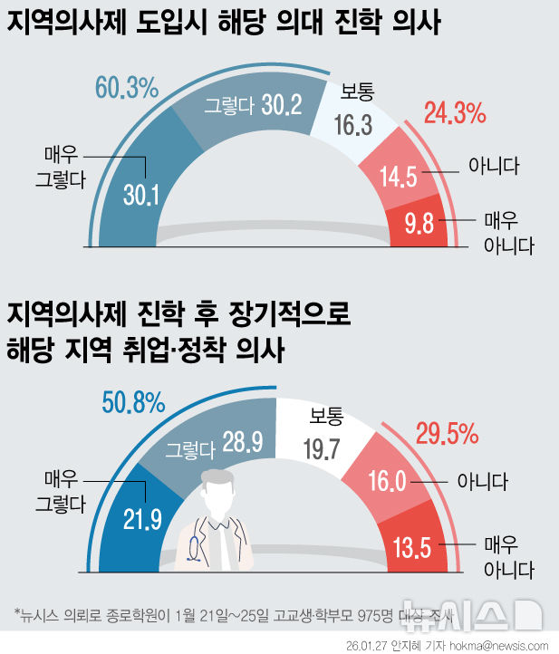 [그래픽] 학생·학부모 60% '지역의사제' 진학 의향 있어