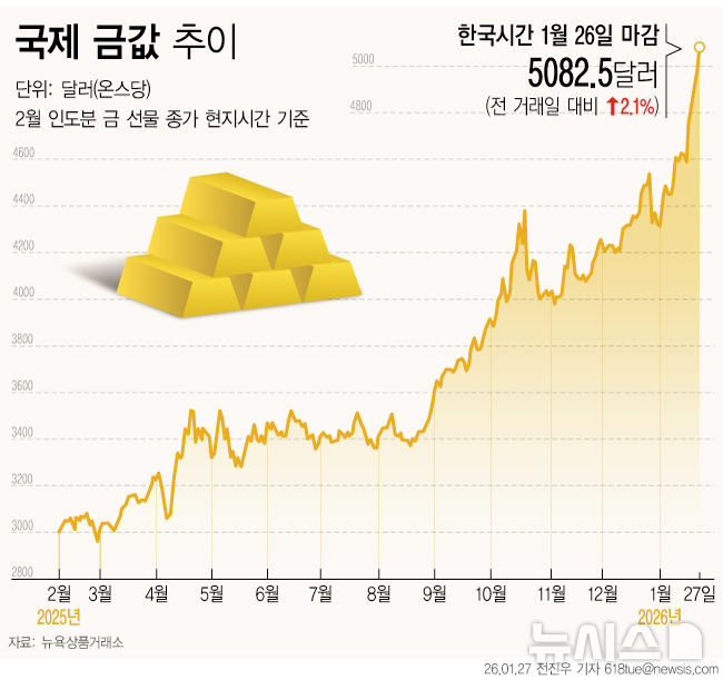 [그래픽] 금값 온스당 5100달러 첫 돌파…사상 최고 경신