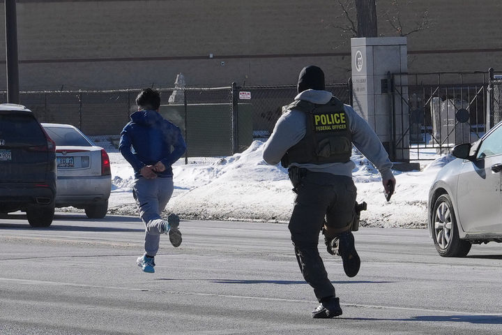 수갑 찬 채 도주하는 남성 쫓는 연방 경찰