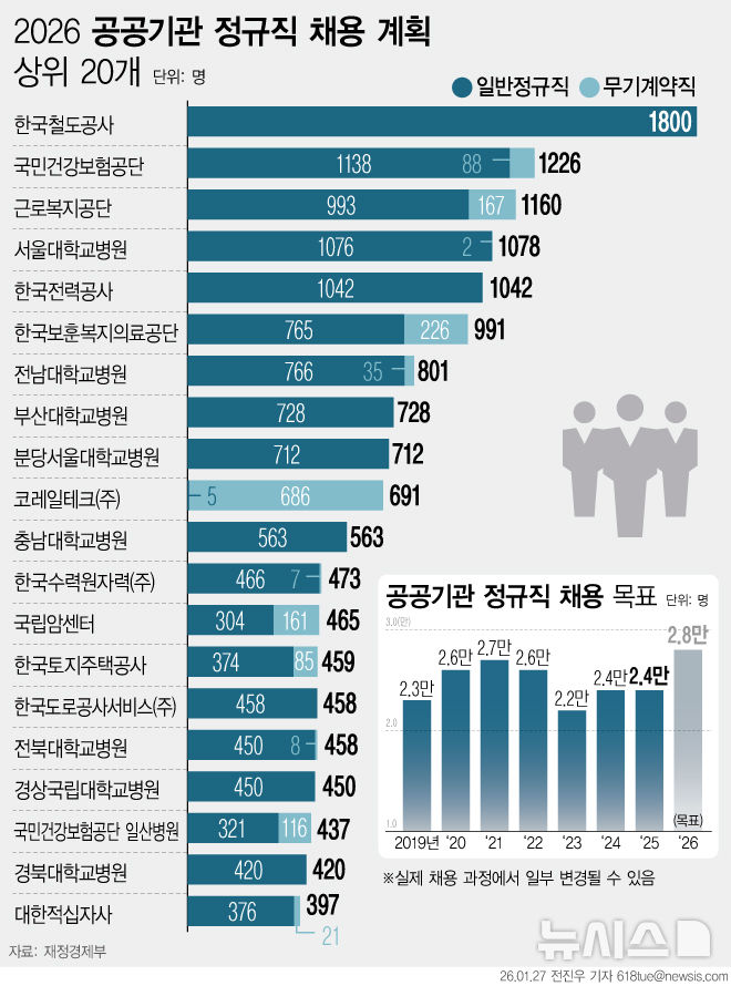 [그래픽] 공공기관 올해 정규직 2.8만명 채용