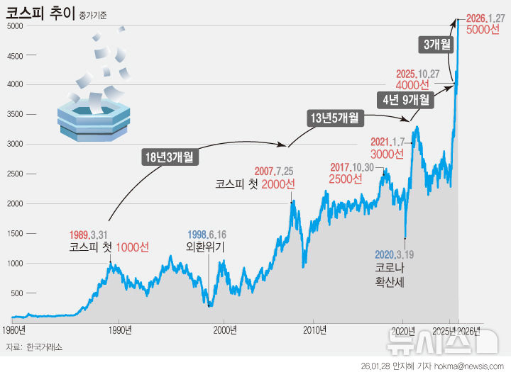 [그래픽] 코스피, 사상 첫 종가 '5000피' 달성까지
