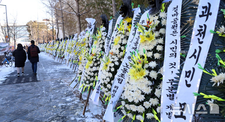 마사회 노조, 국토부 앞에 주택공급 철회 촉구 조화 설치