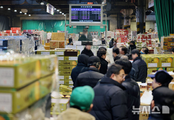 설 앞두고 바쁘게 돌아가는 가락시장 과일 경매장
