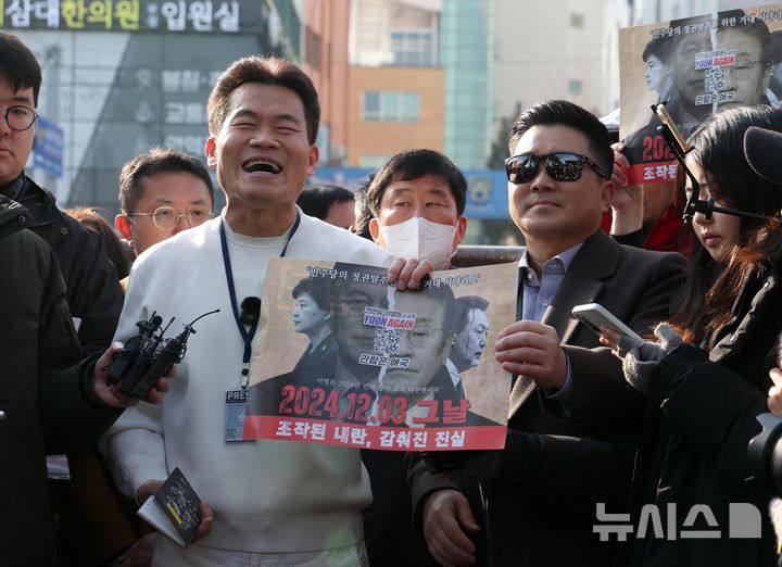 경찰 출석 전 기자회견 하는 전한길