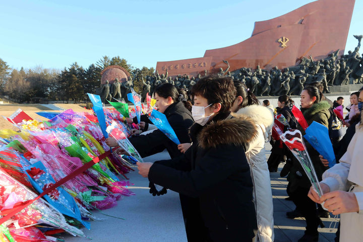 김정일·김정은 동상 참배하는 평양 시민들