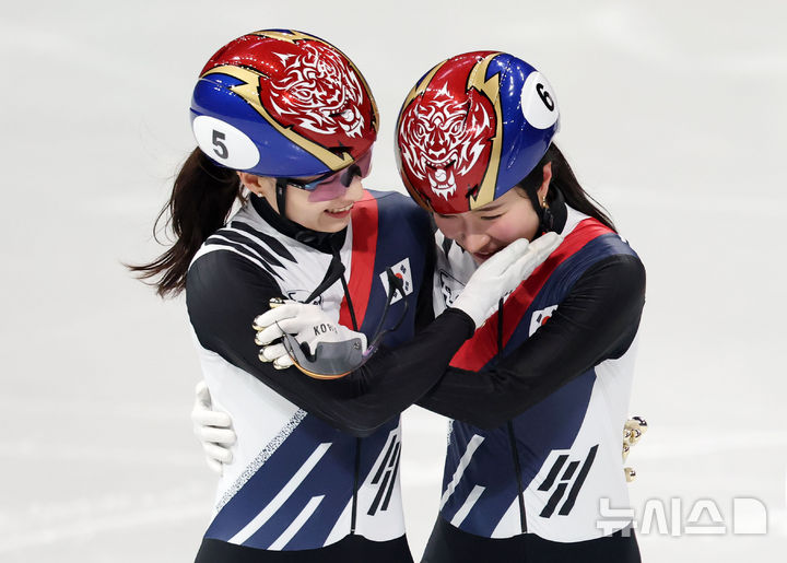 김민정-김길리 '바통 넘긴 포옹'