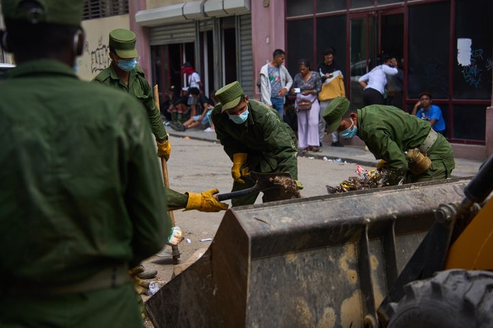 쓰레기 치우는 쿠바 군인들