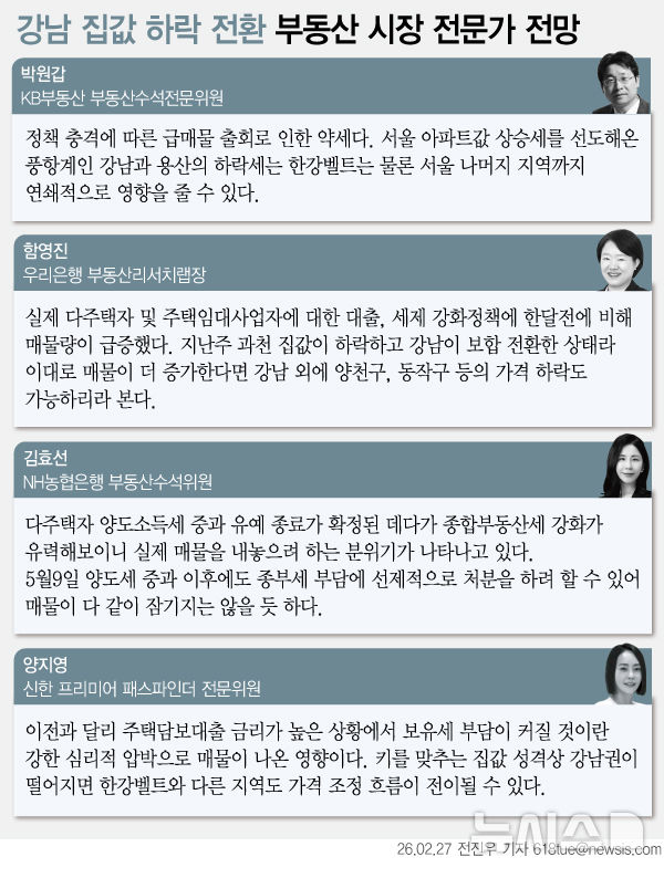 [그래픽] 강남 집값 하락 전환 관련 부동산 시장 전문가 전망