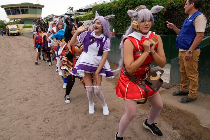 우마무스메 복장으로 얘기 나누는 페루 여성들