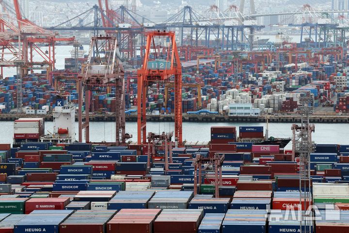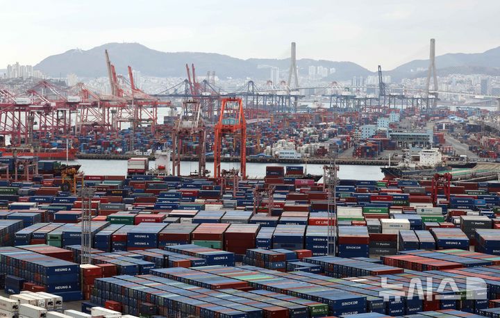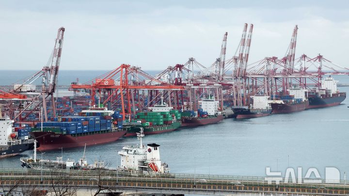 2월 수출 역대 최대 실적...컨테이너 가득 찬 부산항