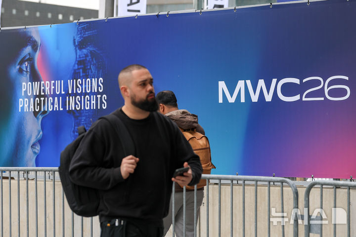 MWC2026 전시장 앞으로 지나가는 업체 관계자들