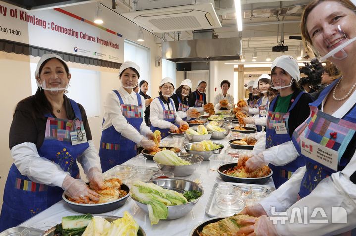 김혜경 여사, 주한대사 배우자들과 함께 김장