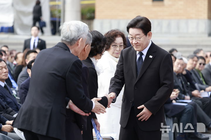 이재명 대통령, 3.15 의거 유족들과 악수