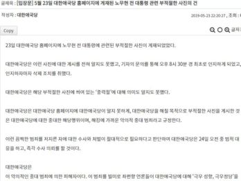 대한애국당, 홈피에 '盧대통령 조롱' 사진 올라와…"해킹" 주장