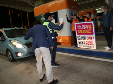 "해고 반대" 도로공사 강릉지사 요금수납원들 밤샘 농성