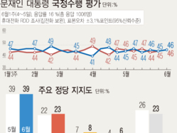 文 지지율 소폭 상승…민주 39% 한국 23% '격차 16%p'