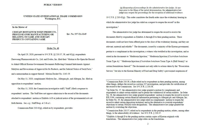 [단독]ITC 재판부 "대웅제약 추가자료 연관성 있다 판단"