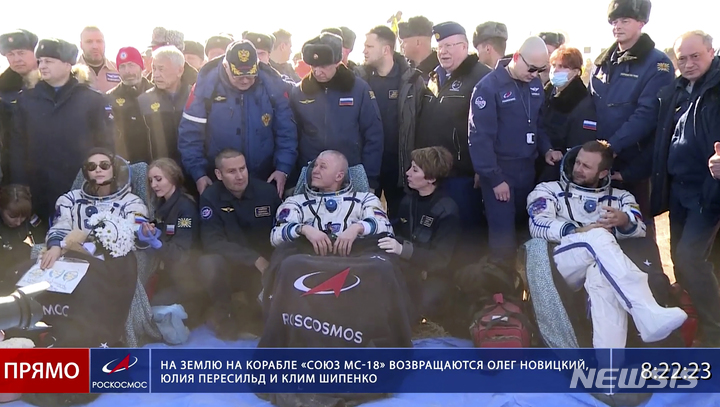 최초 우주서 영화촬영 러 여배우·감독, 12일만에 지구 귀환