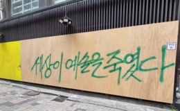 판자로 가려진 '윤석열 저격' 벽화…"정치적으로 편향"