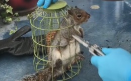새장 모이 가득 먹었'다람쥐'…"뚱뚱해서 새장에 갇혔'다람쥐'"