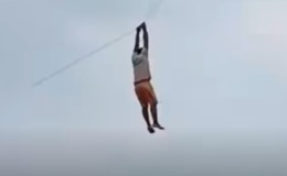 정신줄 놓고 있다 연줄에 매달려 12m 공중 부양 (영상)