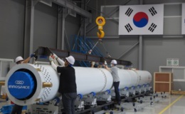 이노스페이스, 국내 민간 첫 시험발사체 '한빛-TLV' 실물 공개