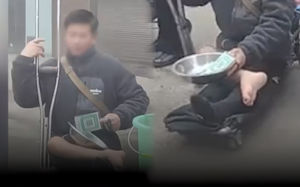 구걸 사기 '가짜 장애인' 변신 과정 다 찍혔다(영상)
