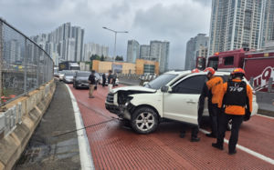 빗길 달리던 SUV, 부산 동서고가서 중앙분리대 '쾅'