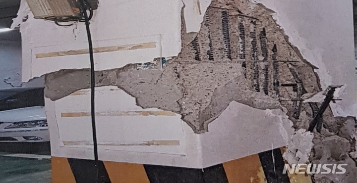 기둥 뜯겨나가고, 주차장 앞 싱크홀