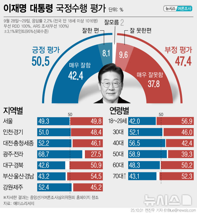 긍정 50.5% 부정 47.4%조재완2025.10.01 06:09:24