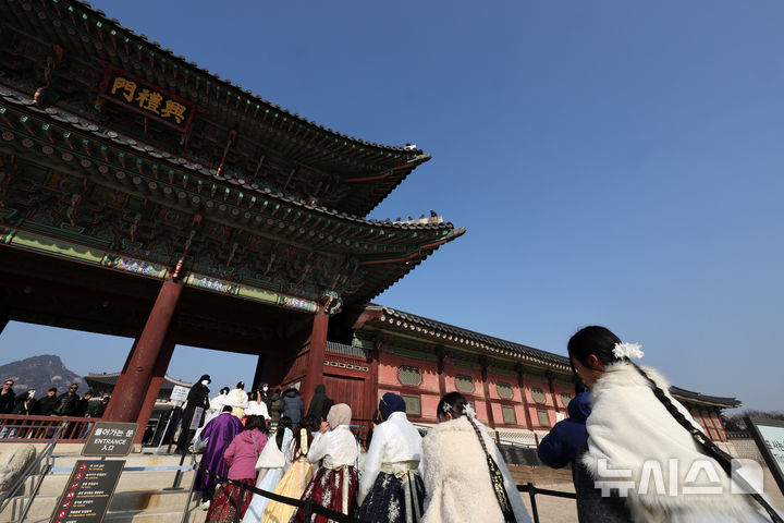 사회 파란하늘 아래 경복궁 찾은 여행객들