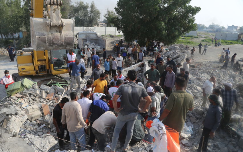 이란의 미사일 공습 현장에 모인 이스라엘 구조대