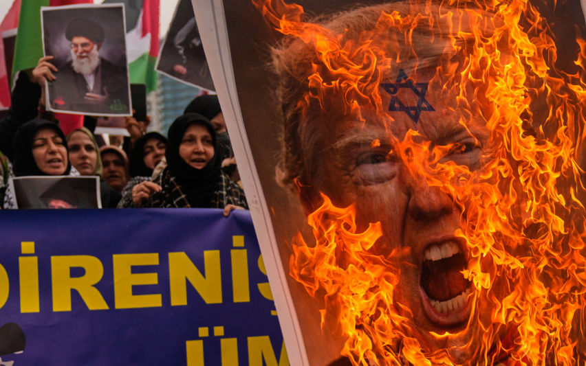 트럼프 사진 불에 태우는 튀르키예 시위대
