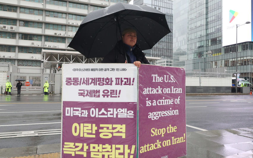 사회 평통사, 이란 공격 중단 촉구 1인 시위