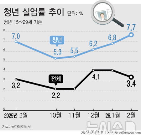 2월 청년 실업률 7.7%…2021년 이후 가장 높아