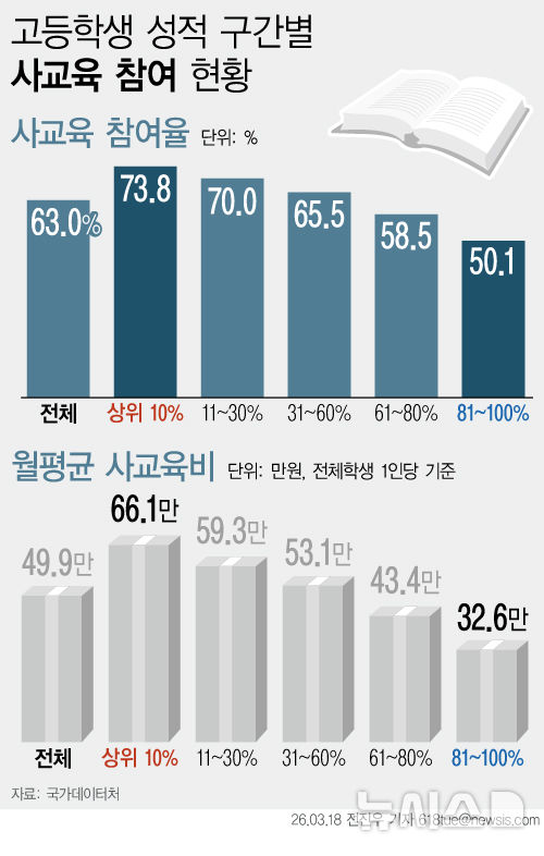 고등학생 성적별 사교육…상위권 참여·지출↑