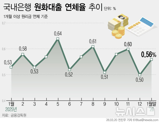 은행 연체율 1월 0.56%…전년대비 0.03%p↑