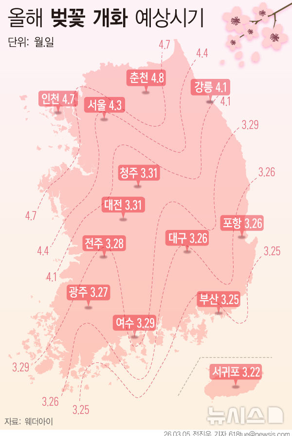 벚꽃 개화 3월 말 시작…서울 4월 3일 예상