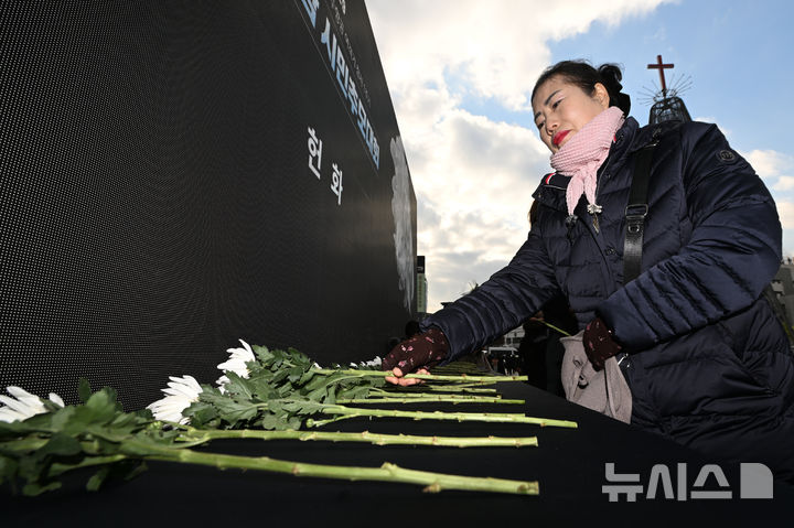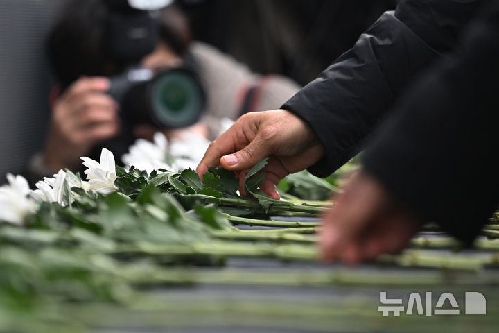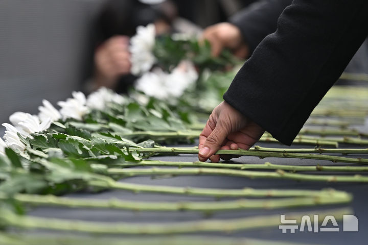 어느덧 참사 1주기, 희생자에 바쳐지는 국화