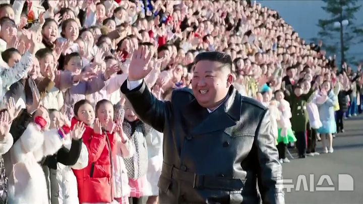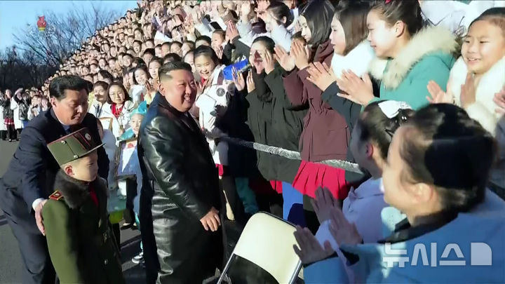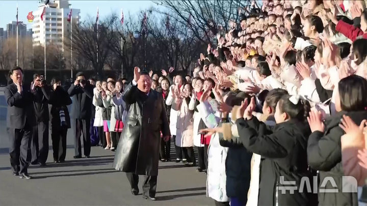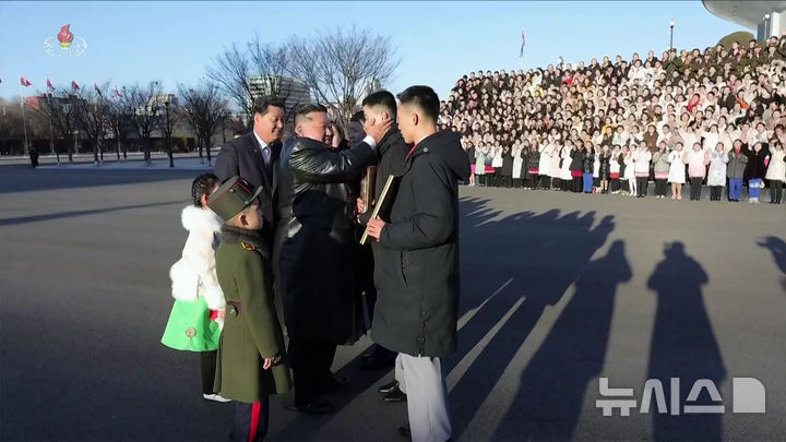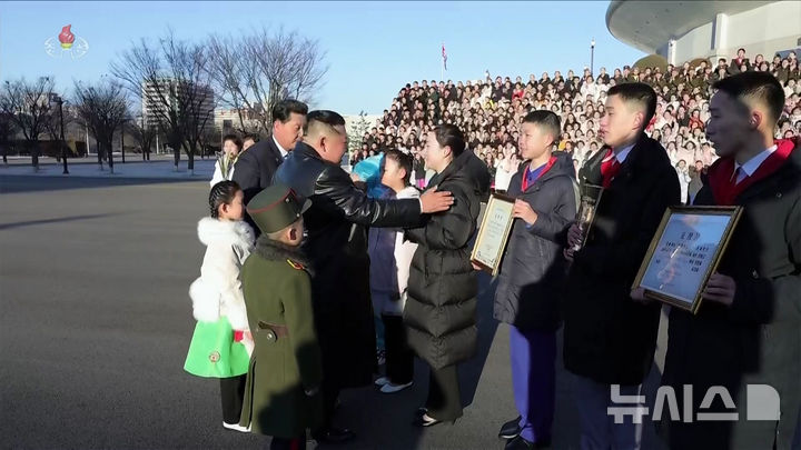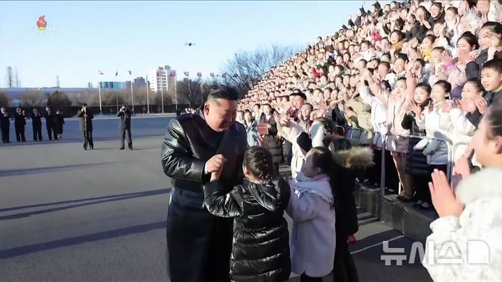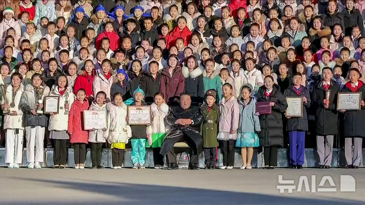 김정은, 설맞이 공연 출연 학생들 만나 기념촬영