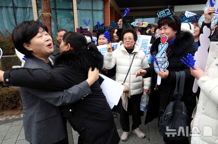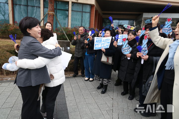 지지자들과 포옹하는 서영교 의원
