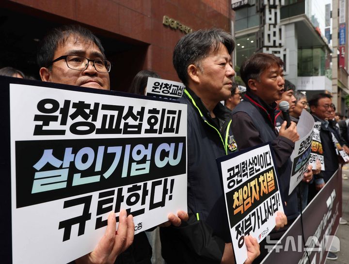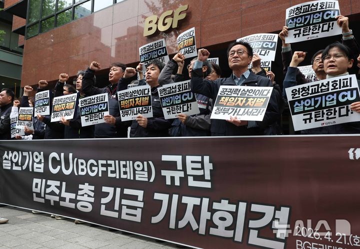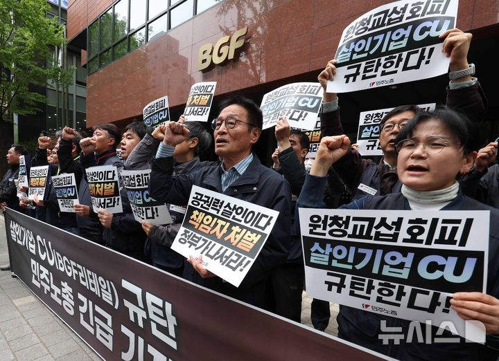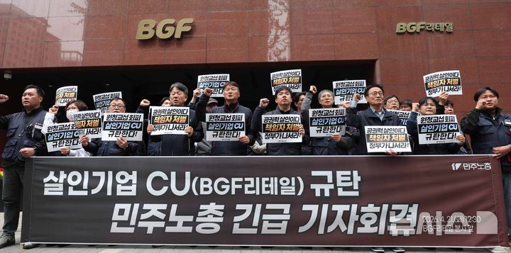 민주노총, 노동자 사망 관련 CU(BGF리테일) 규탄 기자회견