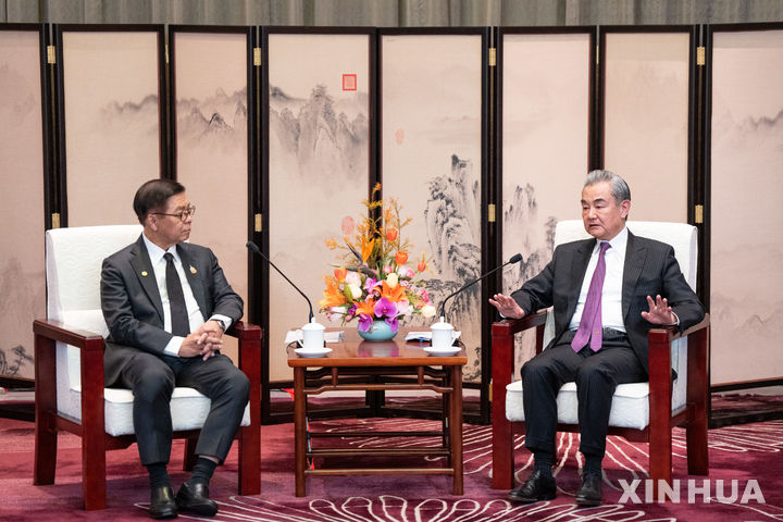 캄보디아-태국 외교 수장과 나란히 선 왕이 외교부장
