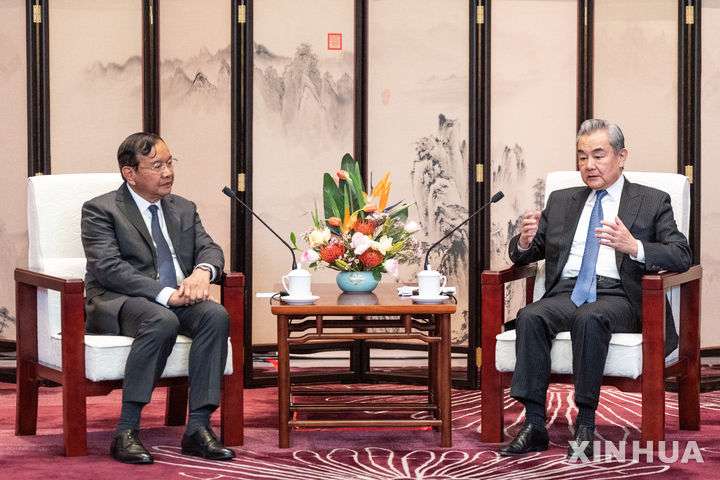 캄보디아 부총리와 회담하는 왕이 외교부장