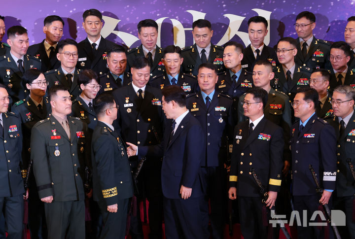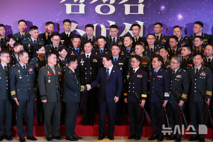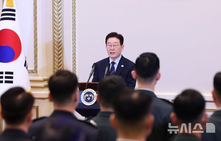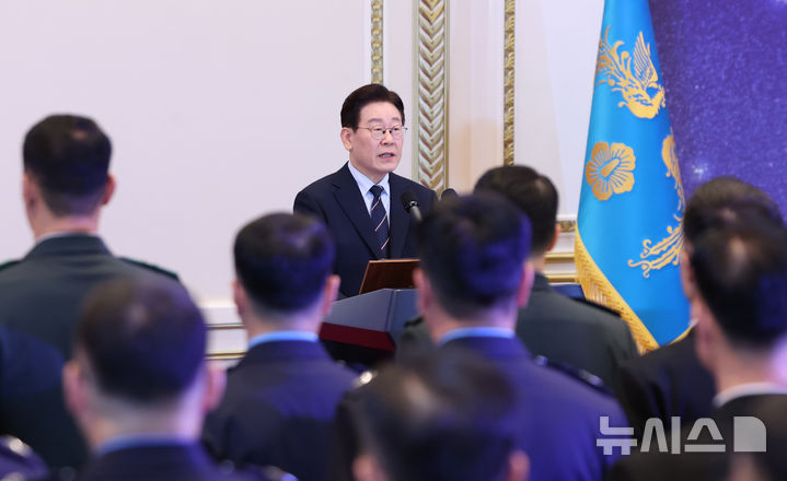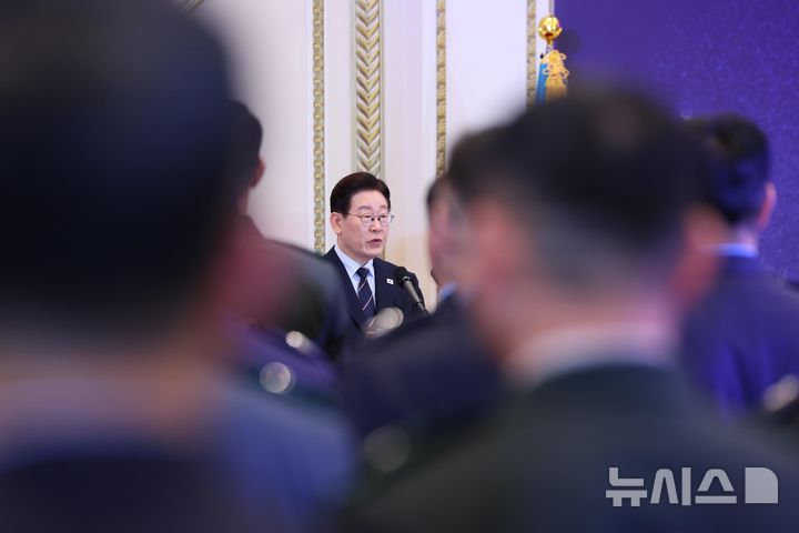 진급 장성들 격려하는 이재명 대통령