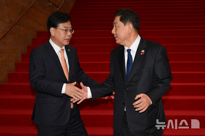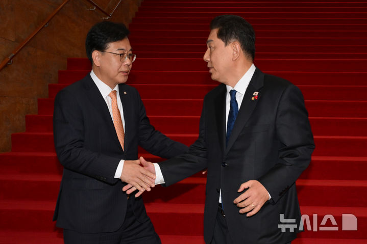 악수하는 김병기-송언석