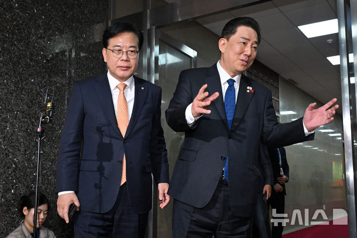 대화하는 김병기-송언석