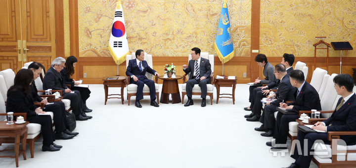 이재명 대통령, 아소 전 日총리 접견