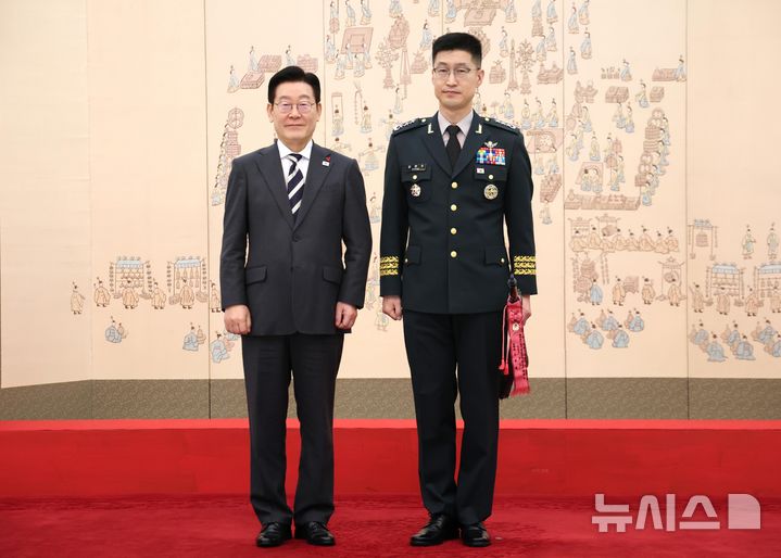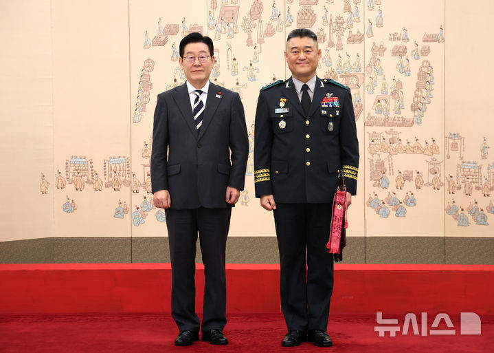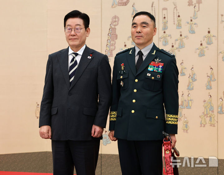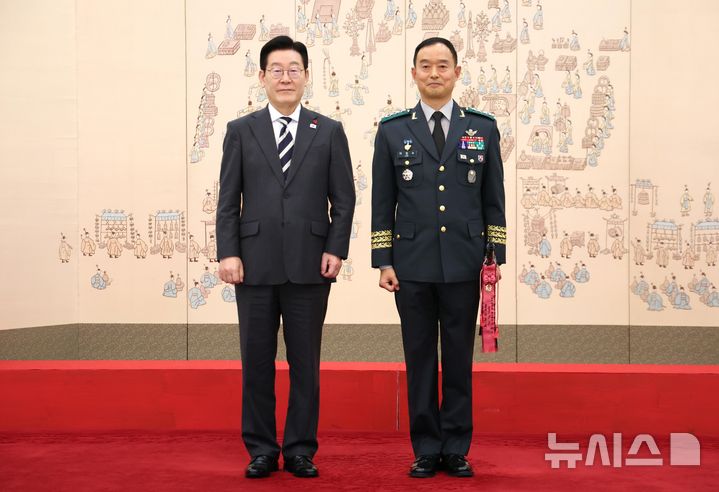 이재명 대통령, 김종묵 지작사령부참모장과 기념촬영