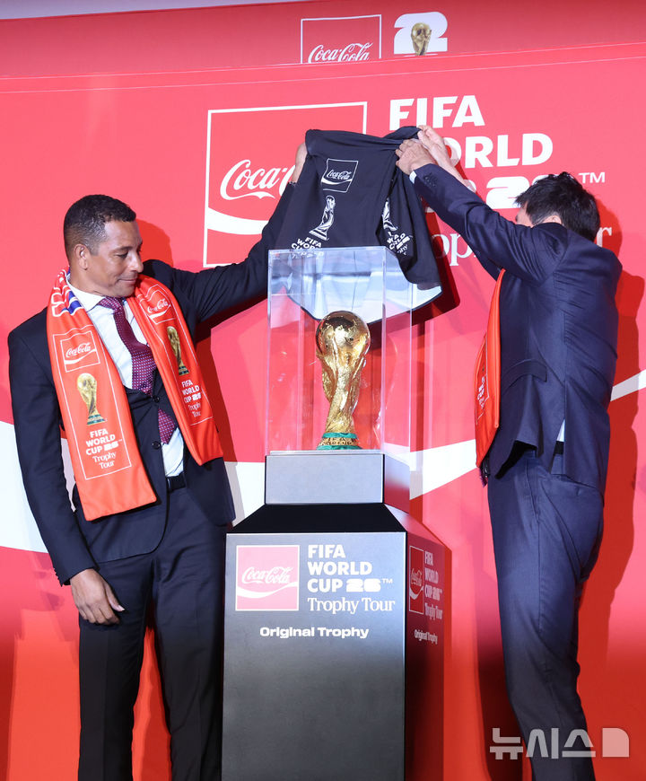 월드컵 트로피 공개하는 지우베르투 시우바, 차범근